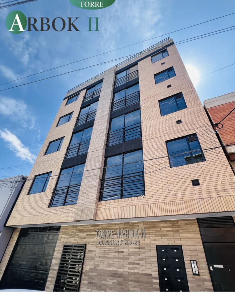 UBICACIÓN ARBOK IIUbicado en el barrio Inglés, de Bogotá. A 3 cuadras del CC CENTRO MAYOR!!! Cerca a las paradas del sitp y alimentador, cerca a la General Santander, a pocas cuadras del colegío Bravo Paez.COMO LLEGARDESCRIPCIÓN ARBOK IIProyecto Torre Arbok II, cuenta con 16 apartamentos, zona de terraza totalmente enchapada, zona de bbq para reuniones sociales, parqueaderos. Previous Next TIPO 1APARTAMENTO ÁREA CONSTRUIDA35.90 m2 AGOTADO VER MÁS TIPO 2APARTAMENTO ÁREA CONSTRUIDA42.03 m2 AGOTADO VER MÁS TIPO 3APARTAMENTO ÁREA CONSTRUIDA40.89 m2 AGOTADO VER MÁS TIPO 4APARTAMENTO ÁREA CONSTRUIDA32.75 m2 AGOTADO VER MÁS